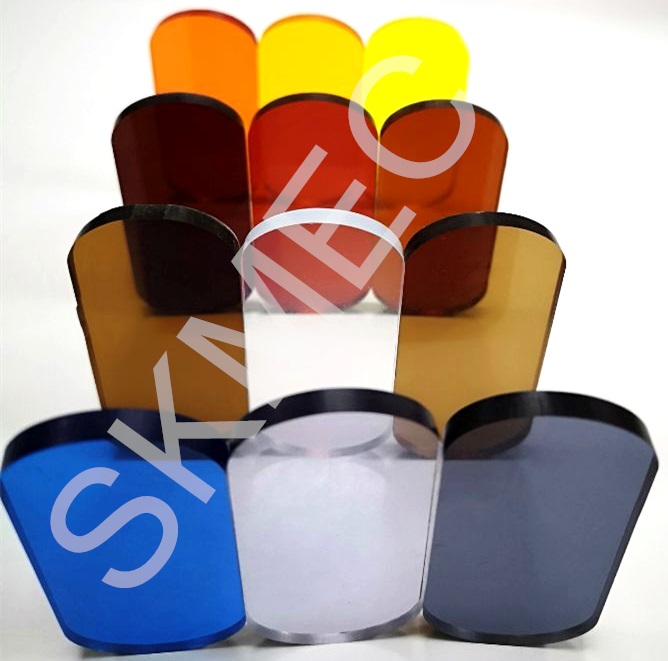 顏色:透明,茶色,藍色,黃色,黑色,煙色等(注:黃色可濾除紫外線)