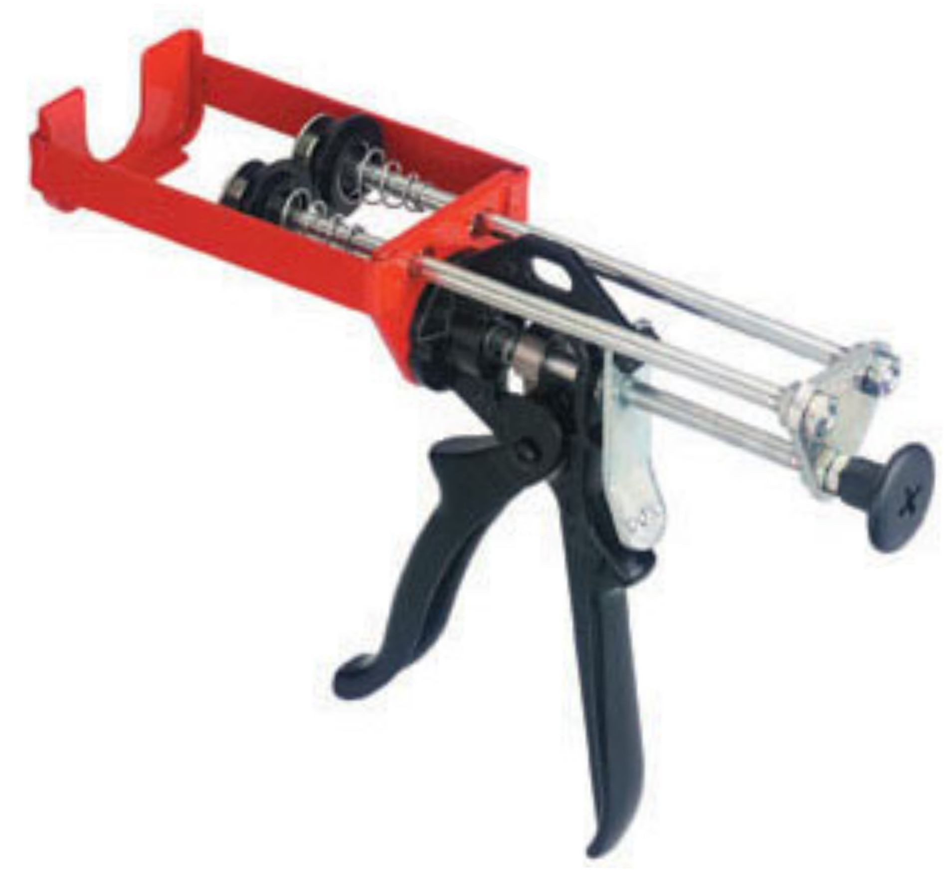 用于中等粘度材料的雙組份手動膠槍用于150ml 1:1 (75+75ml) 固定比率雙聯膠筒18:1扳機比率凈重1020g膠筒定位器