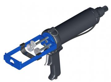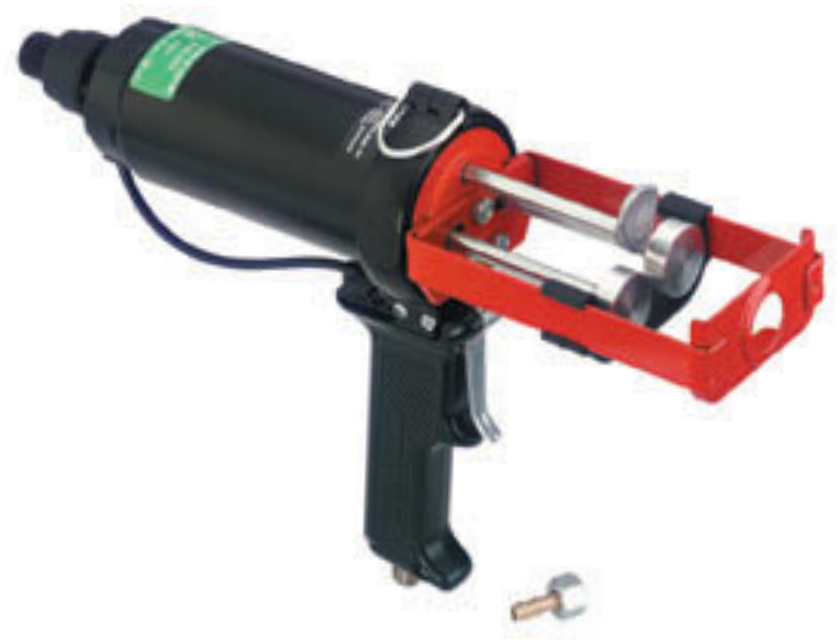 氣動(dòng)雙組份膠槍用于220ml 1:1 (110+110ml) 固定比率雙聯(lián)膠筒工作氣壓為6.8 bar時(shí)有2.20kN (220kgf)的推力重量1690g氣動(dòng)復(fù)位為可選配置