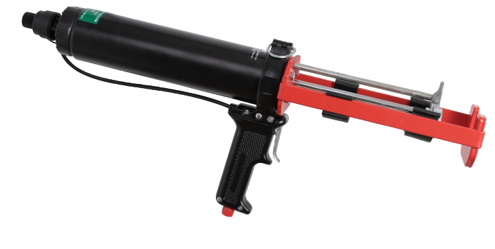 專業型雙組份氣動膠槍用于400ml 1:1 (200+200ml) 固定比率雙聯膠筒工作氣壓為6.8 bar時有2.2kN (220kgf) 的推力重量2210g氣動復位為可選配置